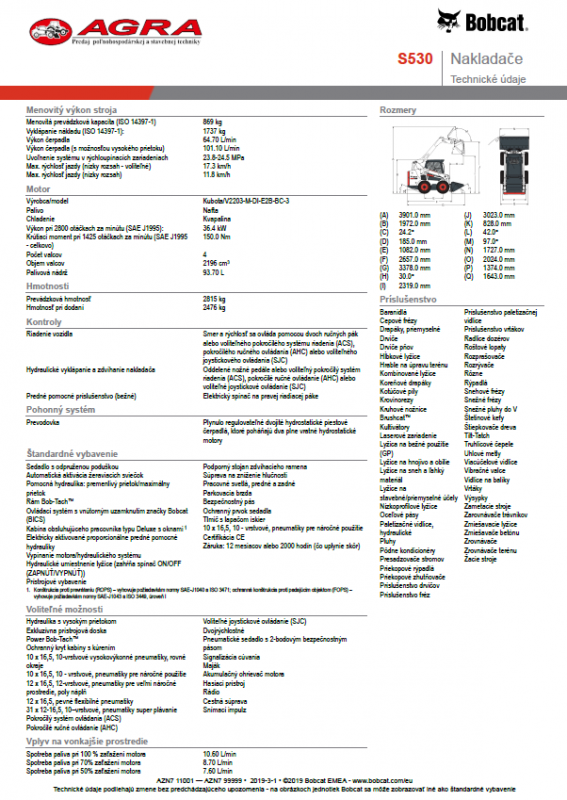 Nakladač Bobcat S530 má výkon motora 41,0 kW. Jedná sa o nový typ nakladačov s vertikálnym zdvihom a zvýšeným výkonom hydrauliky o 20% na 64,7 l/min.. Tento nakladač je novým modelom, ktorý nahrádza Bobcat S175, ktorý bol najpopulárnejším nakladačom Bobcat na našom trhu. Stroj sa štandardne pohybuje rýchlosťou 11,8 km/hod.. Na želanie je možné vybaviť stroj aj druhou pojazdovou rýchlosťou až 17,3 km/hod..