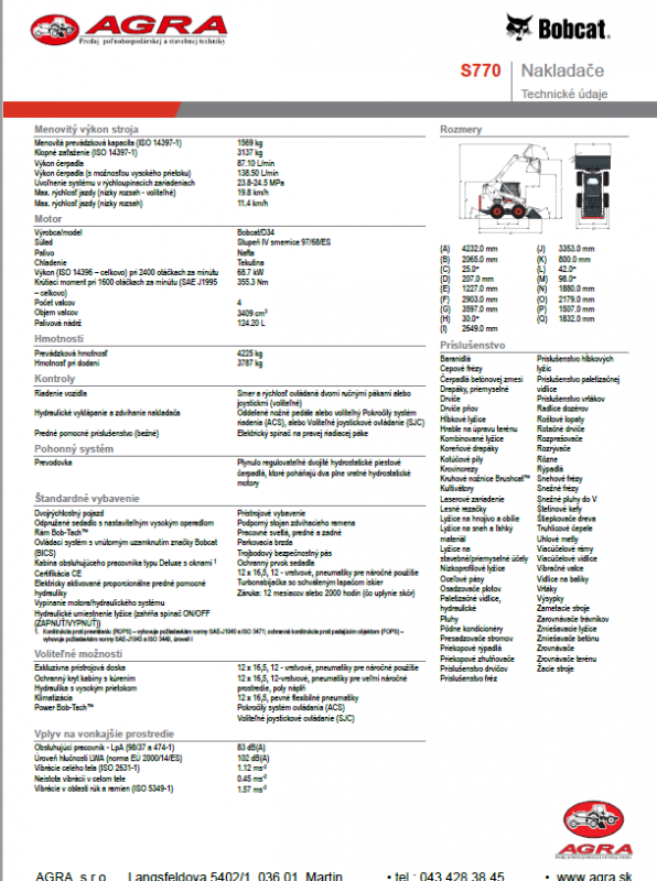 Nakladač Bobcat S770 je navrhnutý tak, aby poskytoval maximálny výkon a produktivitu pri práci. Nakladač ľahko premiestňuje palety a taktiež rýchlo a efektívne nakladá nákladné autá. Model S770 je vybavený novým motorom Bobcat D 4. Vertikálna dráha zdvíhania S 770 poskytuje väčší dosah pri plnej výške zdvihu bez zníženia výkonu.