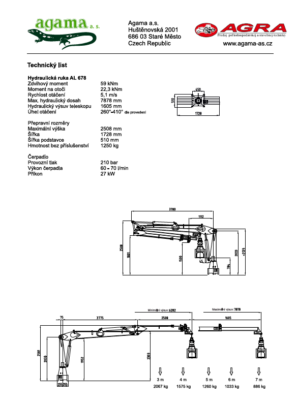 zdvihový moment: 59 kN    dosah ramena: 7 878 mm