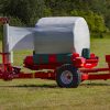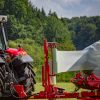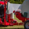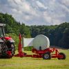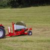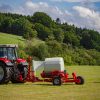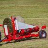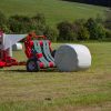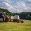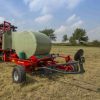 Ťahaná obaľovačka s rotačným stolom pre manipuláciu s okrúhlymi  balíkmi do hmotnosti 1 200 kg.