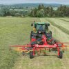 Kopírovanie terénu je zaistené trojkolesovým podvozkom pod rotorom, ktorý je štandardne dodávaný k všetkým typom ťahaných dvojrotorových zhrňovačov. Na ňom je každý rotor upevnený samostatne a nezávisle na ráme stroja. Jedno z kolies je uložené tesne pred pracovnými prstami a umožňuje pozdĺžne kopírovanie. Druhé dve kolesá sú na náprave pod skriňou rotora. Priečne kopírovanie umožňuje zavesenie pracovného rotora na otočnom čape.