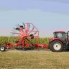 Prepravná šírka zhrňovača krmovín Kverneland 9580 C s novo skonštruovanými nápravami kolies je menšia ako 4 m, a to aj s namontovanými ramenami s prstami.